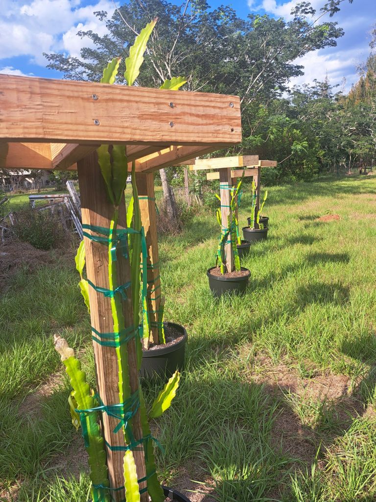 Bob Villa apparently grows dragonfruit and recommends palm fertilizer. Richard from grafting dragonfruit uses flora nova. That’s what we currently use. We’ll try the palm fertilizer though.